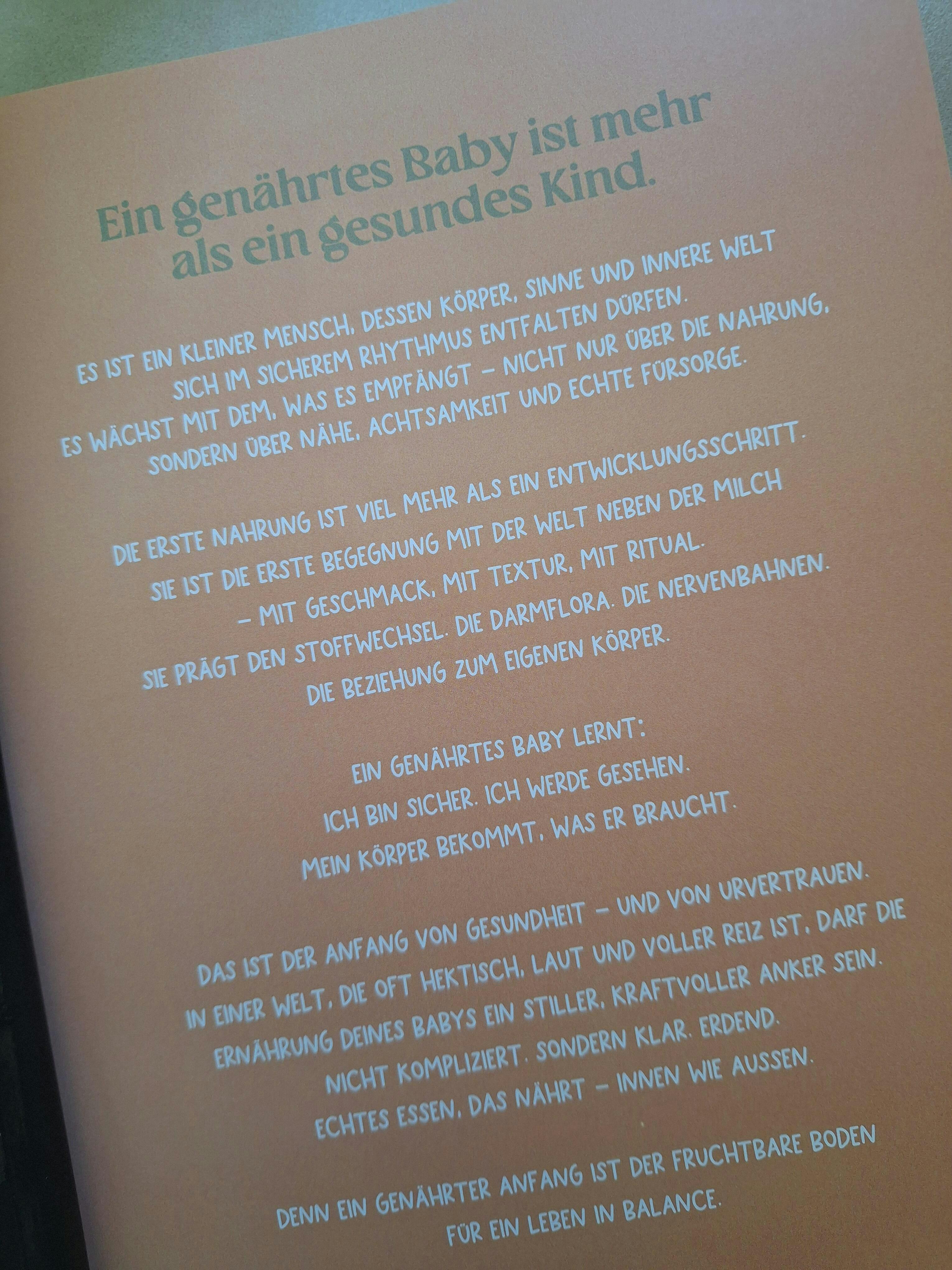 Ich habe die ersten Seiten des Buches gelesen und mir wurde richtig warm ums Herz. Die Perspektive auf das Ernähren, auf Babys und Kinder, auf Familie, auf Mütter - das ist alles so stimmig und ich freue mich, durch dieses Buch weiter in diese Lebens- und Sichtweise eintauchen zu können. Daneben ist es natürlich auch ein großartiges Rezeptbuch mit Rezepten, die man in dieser Art und Zusammenstellung sonst nirgendwo findet. Ich muss zugeben, neidisch bin ich auch: Dieses Verständnis vom Nähren und die Art der Kost hätte ich meinen Eltern/mir als Baby auch gewünscht. Ich kann es nur allen Familien ans Herz legen, sich dieses Buch zu gönnen.