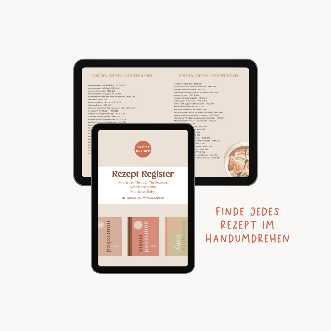 Note: The page numbers refer to the current editions (Nourished Mama has different page numbers in the 2nd edition than in the 1st edition, as pages have been added.)